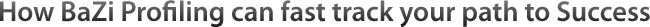 The findings revealed at each level of BaZi profiling will enable you to understand your strengths and weaknesses. You will learn how you function, how you operate within a group setting, and how you respond to work demands, challenges and day-to-day tasks.